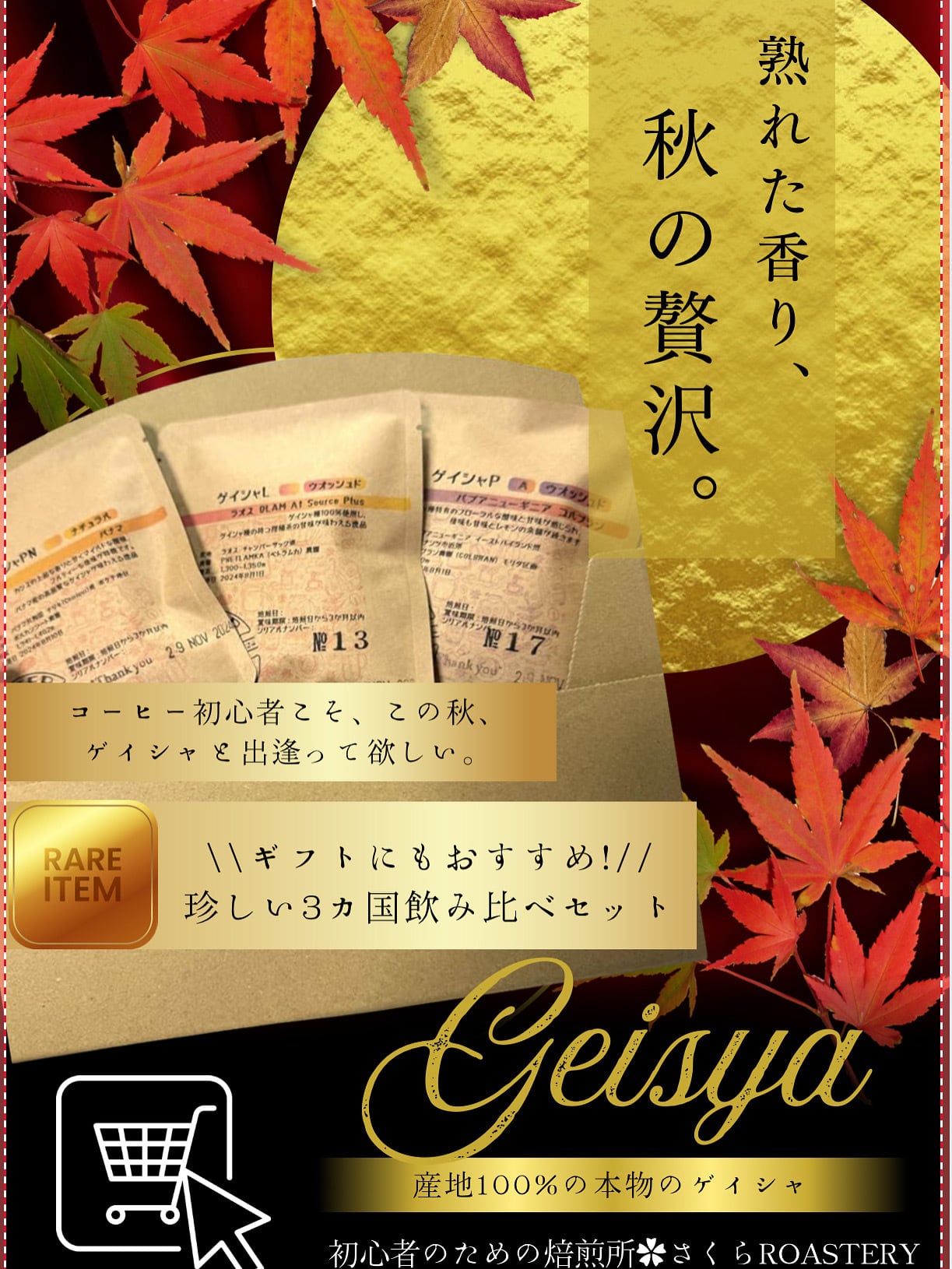 最高級コーヒーとして有名なゲイシャ3種の飲み比べセットです。